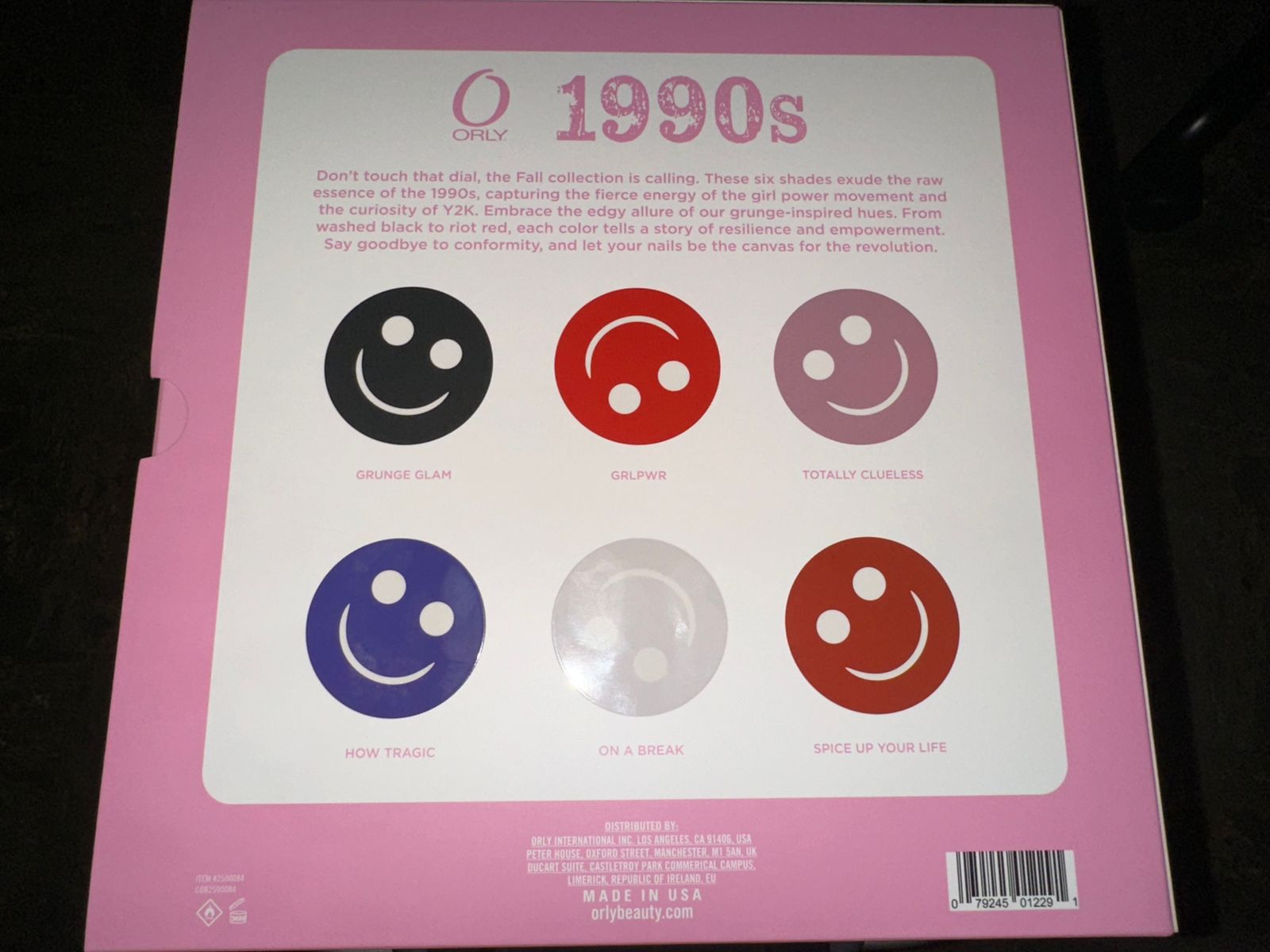 This limited edition collectible 6PIX features special bottles with the original vintage ORLY logo from the 1990s. These unique bottles are exclusively available as part of this collection.