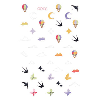 This Nail Decal sheet includes 42 decals of butterflies, clouds, and more.