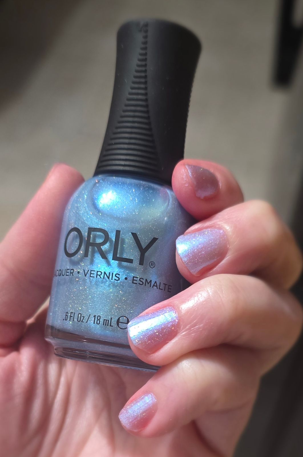 • A baby blue frosted holographic shimmer that feels like texting your bestie on your first flip phone - shiny and unforgettable.