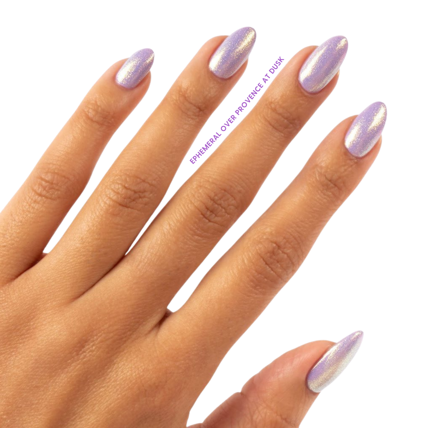 Ephemeral Nail Lacquer is a sheer gold iridescent shimmer. Layer over your favorite shade for a glistening finish. Shown in third swatch over White Tips and fourth over Provence at Dusk.