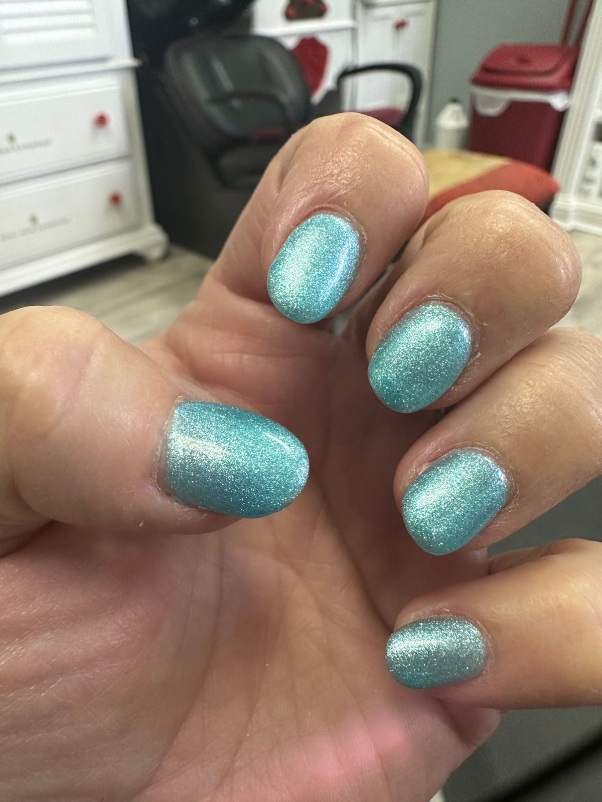 I am in love with this color. It's the perfect summertime beachy vibe with plenty of shimmer & shine,