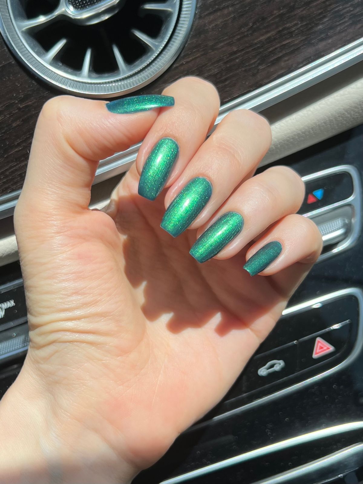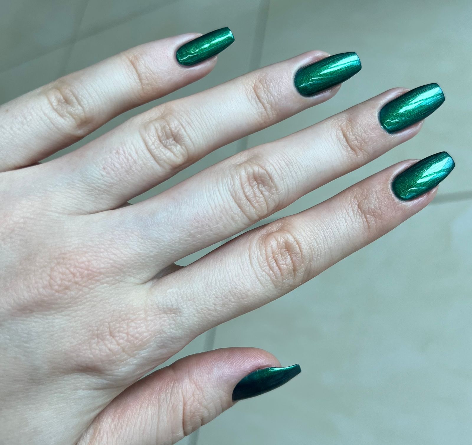 Green is my favorite color and this emerald shade looks great. As a man who recently started painting my nails it goes on easy.