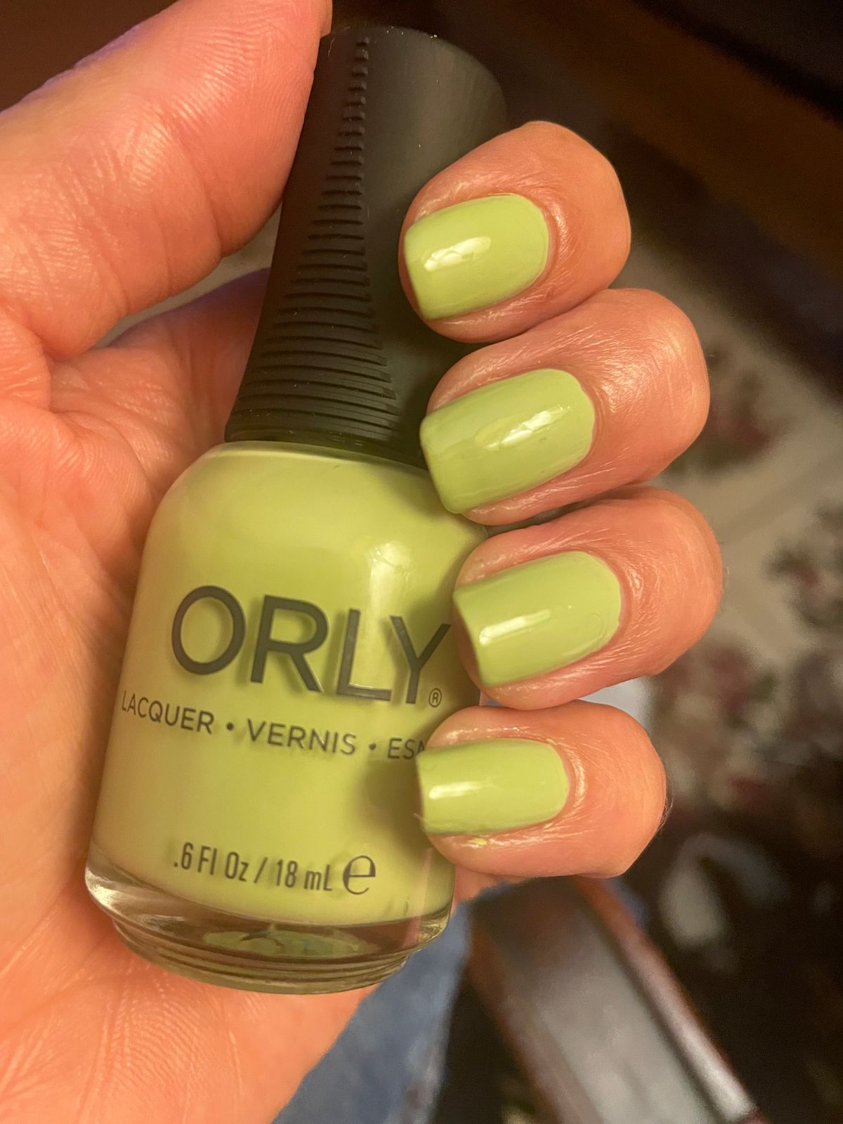 This is a great color. I use it with blue and purple for a fun, unique, colorful manicure. It goes on beautifully, not too thick, but very opaque coverage with 1 coat. I did use 2 coats over Orly rubberized base coat (I dont do any manicure without it). I love the color, the coverage, and that Orly lacquer lasts about a week before chipping just on the tips. About the 4th or 5th day, I add one more coat of color and another thin coat of the topcoat and it lasts another several days.