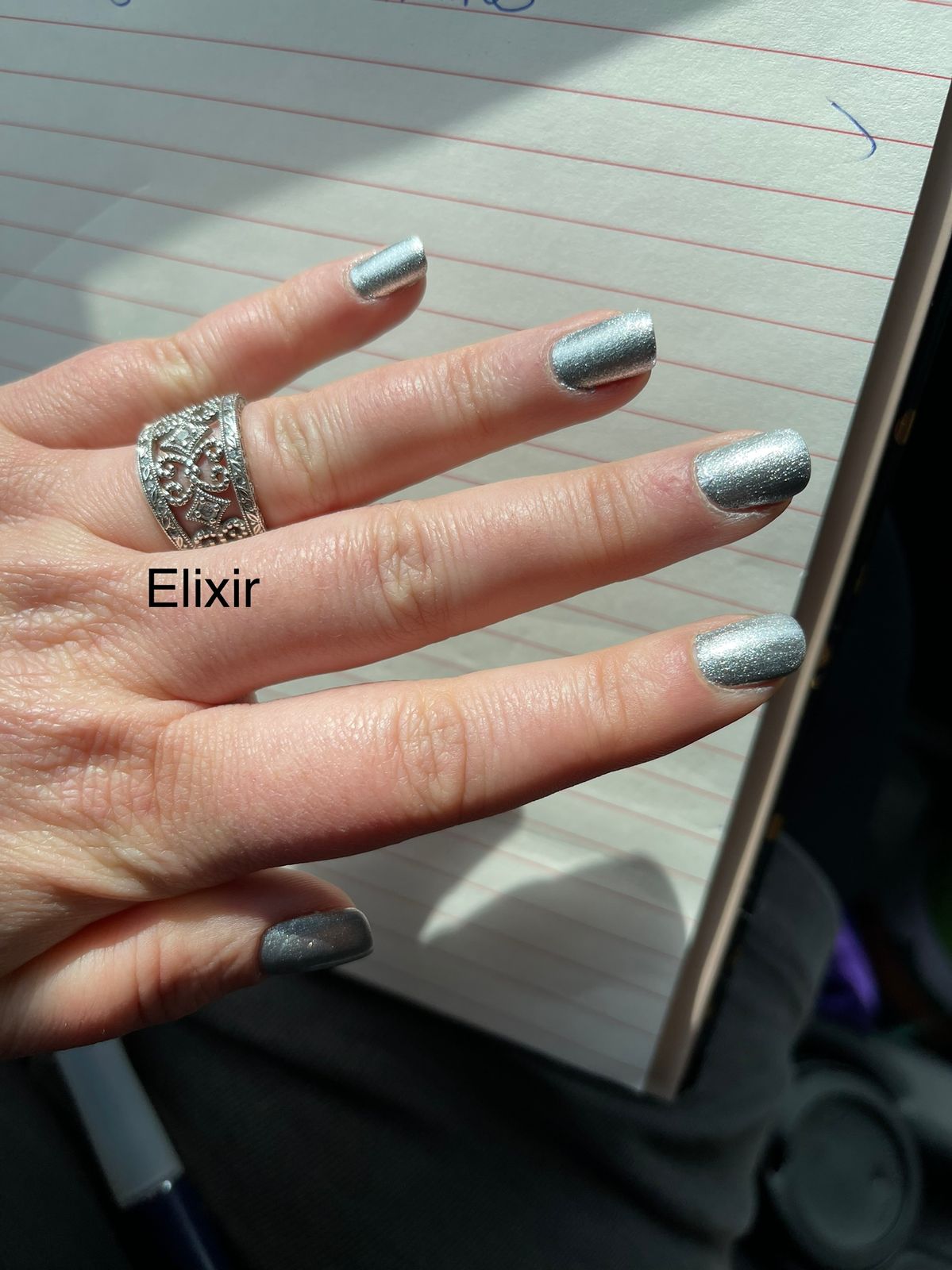 Elixir Breathable Treatment + Color is a lustrous metallic silver with a hint of gray undertone, offering a smooth, full-coverage finish.