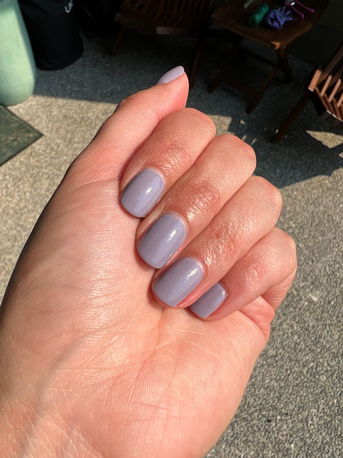 • November Fog Nail Lacquer is a crème finish, lavender-gray shade that seamlessly blends subtle purple undertones with a sophisticated neutral hue.