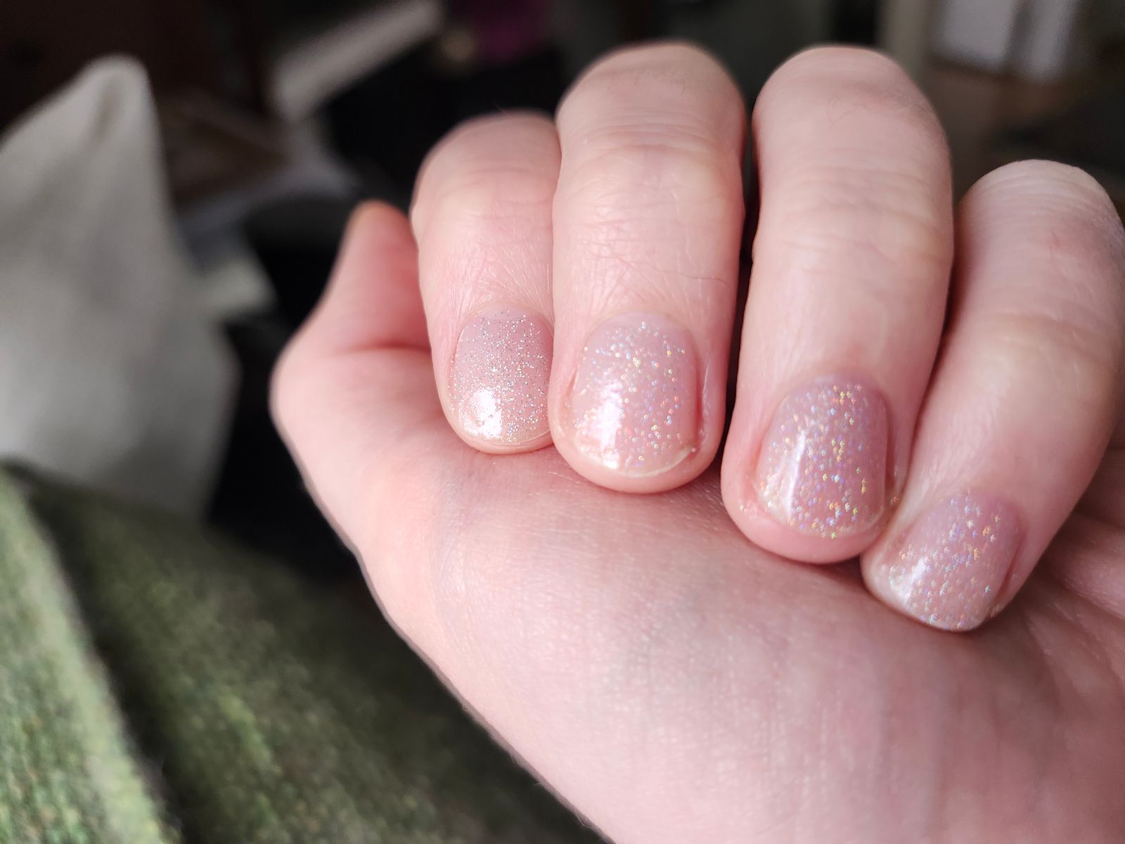 It's a very pretty holo sparkle that reminds me of falling snow during the holiday season! It would make a great base for a wintry French manicure or some holiday themed nail art. It has a bit of a white cast so I don't love it as a topper on darker colors.