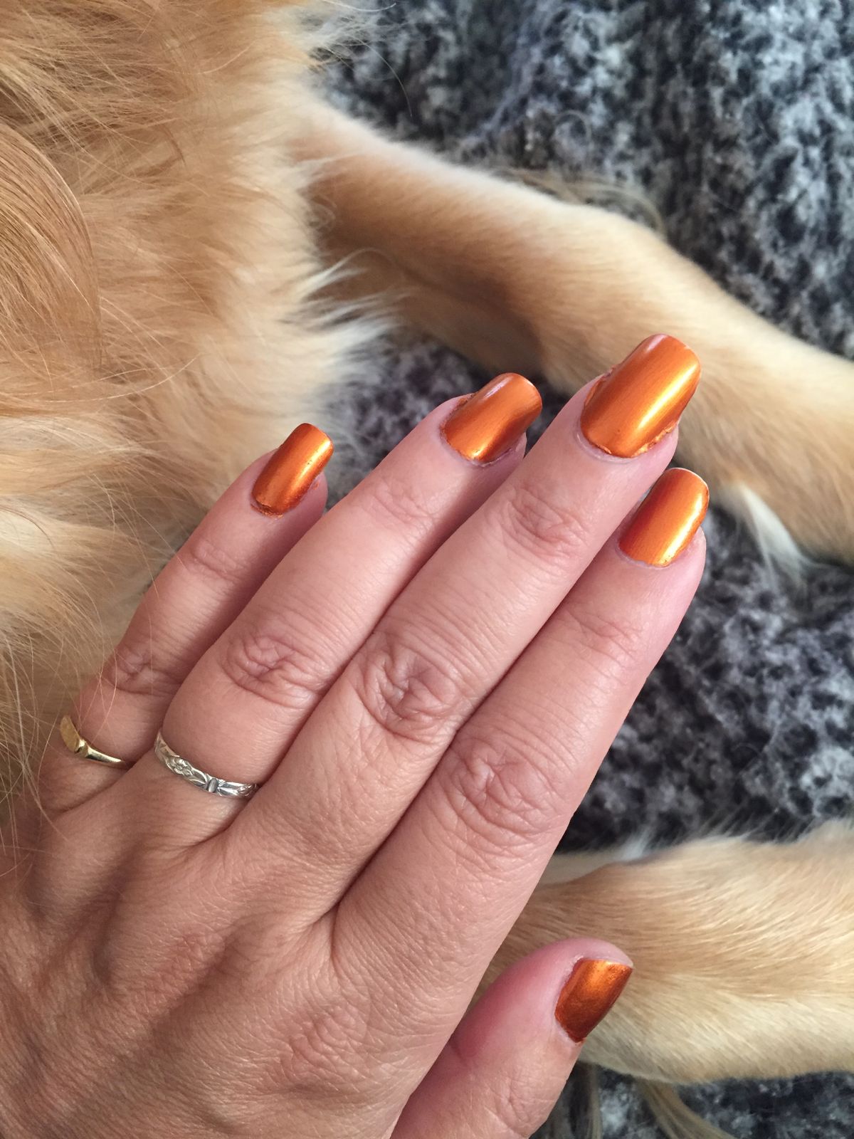 Gorgeous, fiery brilliant orange color! Perfect for the entire autumn. I’ve had lots of compliments!