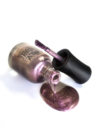 I usually prefer blues to purples, but I love this nail Polish! Very unique nix of purple pink and gold. It looks good with almost any color clothing.