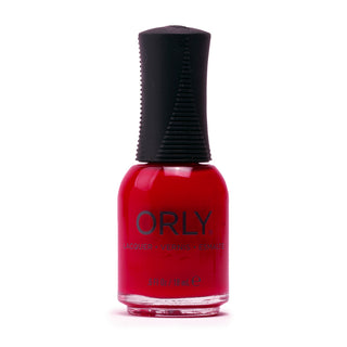 Close-up of red Orly Beauty nail polish being applied to a fingernail with a brush in smooth, even strokes.