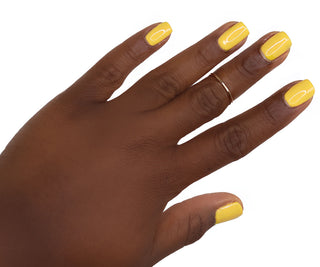 Sunny Side Up Nail Lacquer is a vibrant sunshine yellow with a subtle red shimmer, capturing the glimmer of sunlight peeking through the clouds.