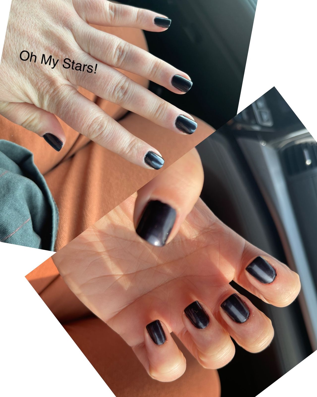 This deep charcoal black shimmer, reminiscent of nights spent stargazing, is a fun twist on dark nails for anyone who wants a bit of sparkle.