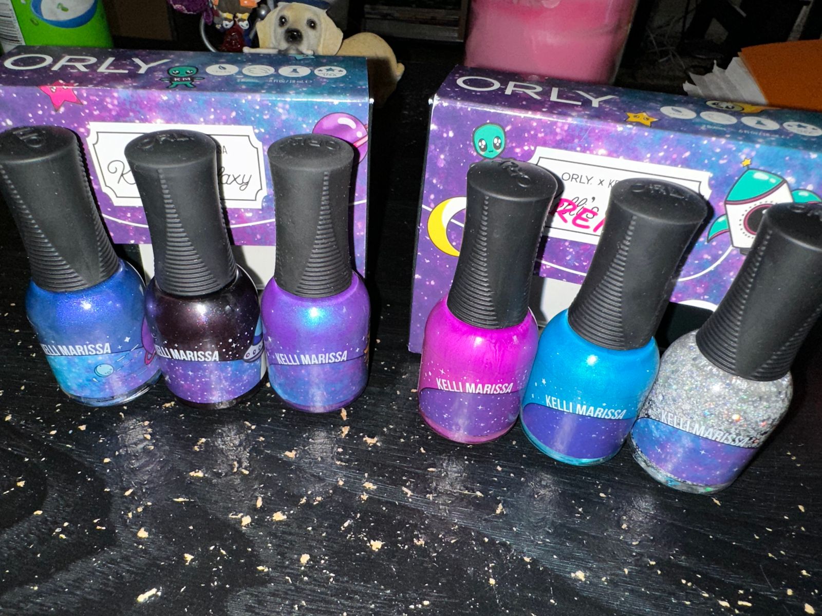 Ingredients: Ethyl Acetate, Butyl Acetate, Nitrocellulose, Adipic Acid/Neopentyl Glycol/Trimellitic Anhydride Copolymer, Isopropyl Alcohol, Tosylamide/Epoxy Resin, Triphenyl Phosphate, Polyethylene Terephthalate, Propyl Acetate, Trimethyl Pentanyl Diisobutyrate, Styrene/Acrylates Copolymer, Acetyl Tributyl Citrate, Synthetic Fluorphlogopite, N-Butyl Alcohol, Stearalkonium Hectorite, Stearalkonium Bentonite, Mica, Tin Oxide, Alumina, Silica, Trimethylpentanediyl Dibenzoate, Benzophenone-1, Polyvinyl Butyral, Citric Acid, Dimethicone, Trimethylsiloxysilicate, Calcium Aluminum Borosilicate. May Contain (+/-):CI 77891 (Titanium Dioxide), CI 77163 (Bismuth Oxychloride), CI 15850 (Red 6), CI 73360 (Red 30), CI 15880 (Red 34), CI 77491 (Red Iron Oxide), CI 77499 (Black Iron Oxide), CI 77492 (Yellow Iron Oxide), CI 77489 (Brown Iron Oxide), CI 15850 (Red 7), CI 77510 (Ferric Ammonium Ferrocyanide), CI 19140 (Yellow 5), CI 42090 (Blue 1), CI 60725 (Violet 2), CI 47005 (Yellow 10), CI 77000 (Aluminum Powder)