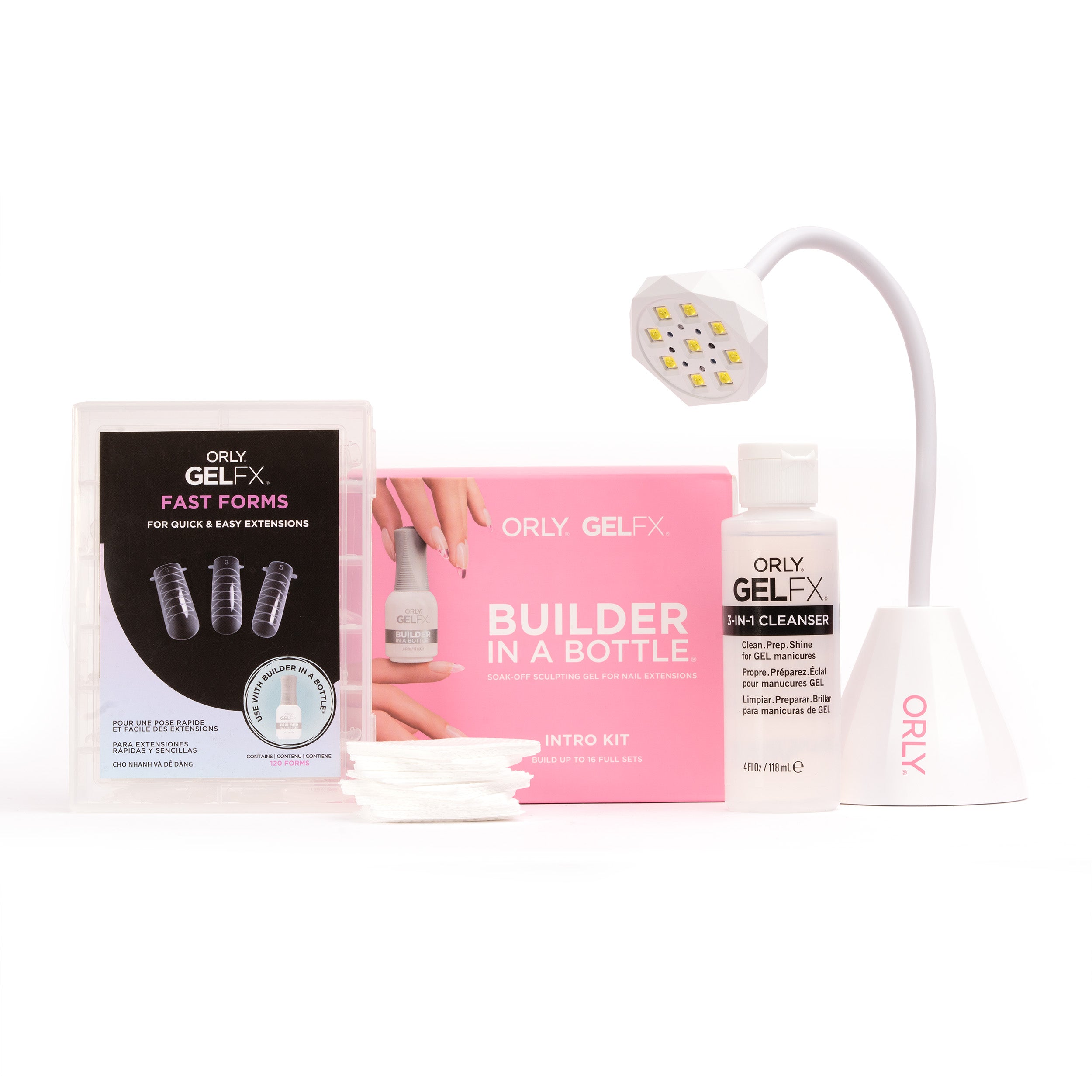 • Builder in a Bottle Intro Kit – includes Builder in a Bottle, Nail Primer, Topcoat, Perfect Fit Forms, Pro Zebra File, and Buffer & File Duo