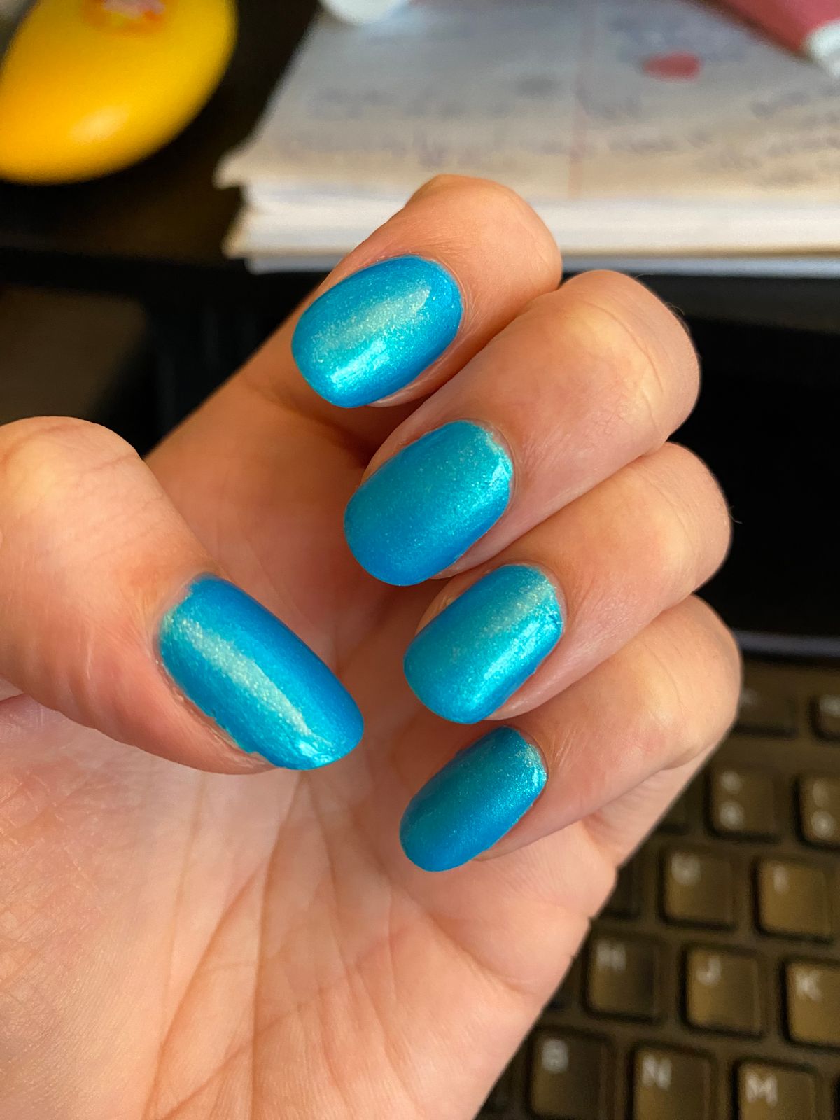 This surprised me on my nails as it’s much brighter than it looks in the bottle. Love it! Gorgeous bright almost turquoise blue. Great coverage and formula.