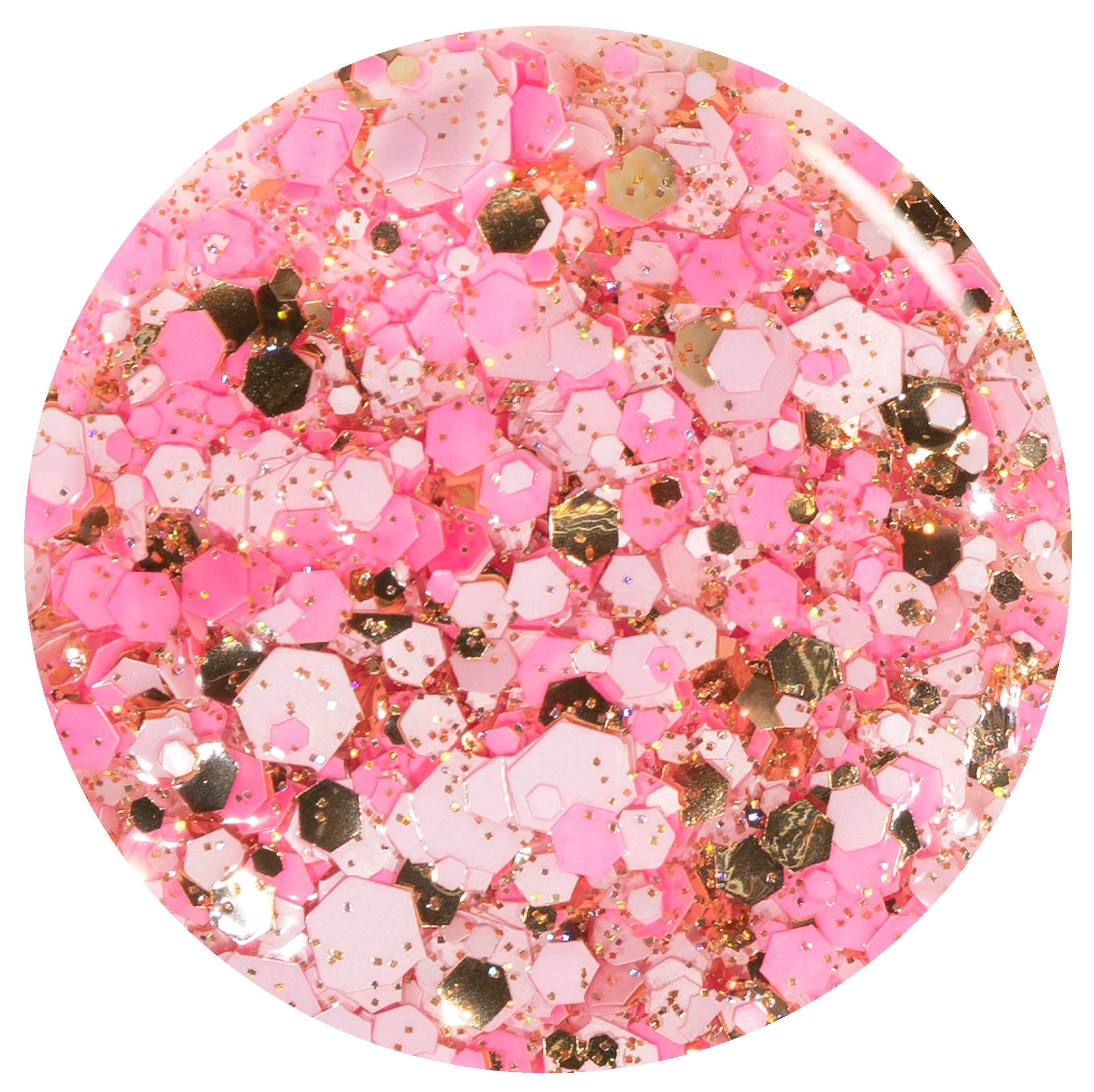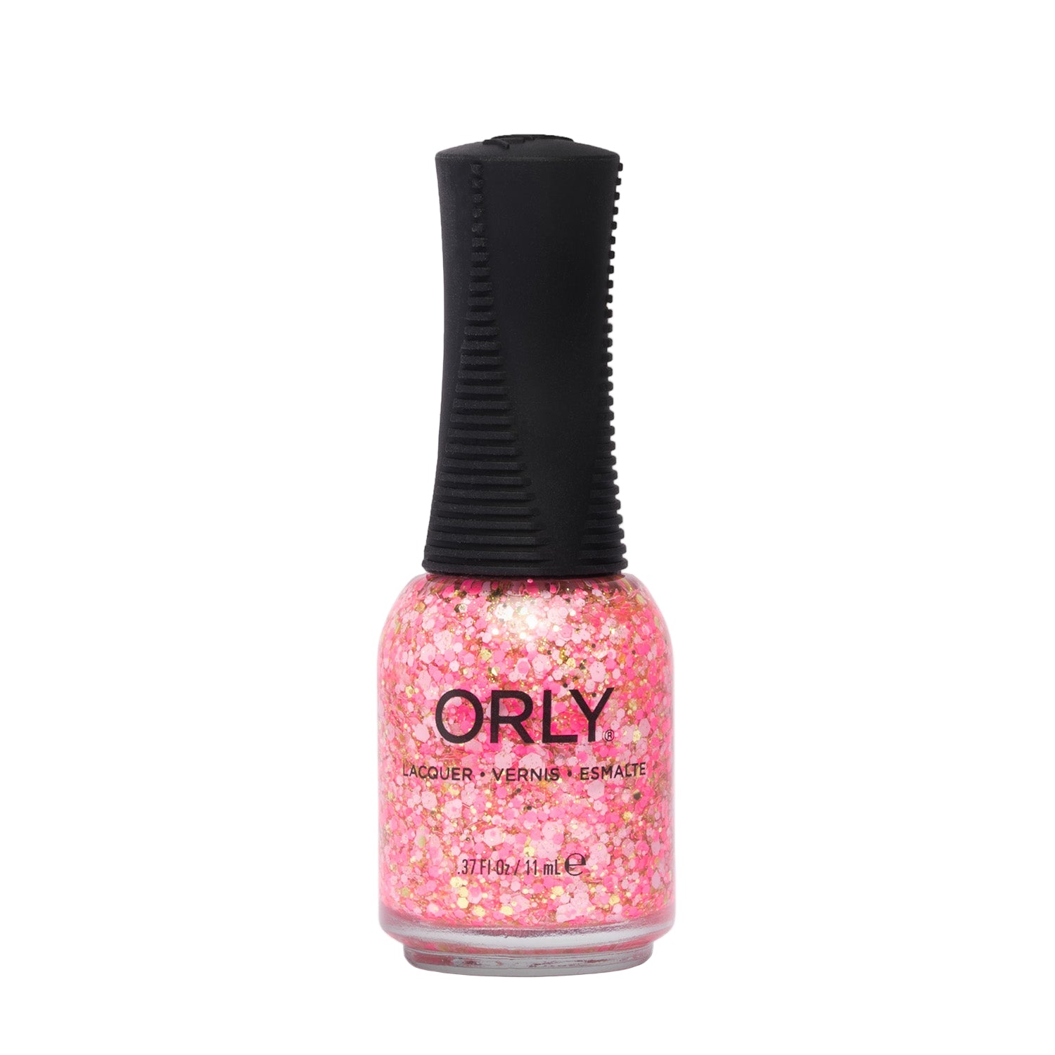 • Raise a glass to 50 years of ORLY with Party in Pink. This pink confetti topper sparkles with holographic gold for a dazzling, celebratory effect. Layer it on to turn any look into a party.