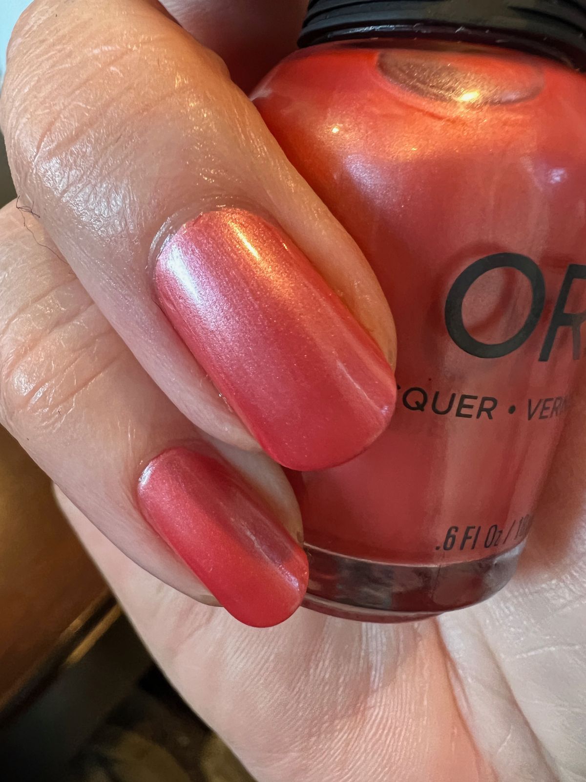 This is a great vintage-inspired color that is not too obnoxious or boring. A very nice, light-burnt orange color with shimmer.
