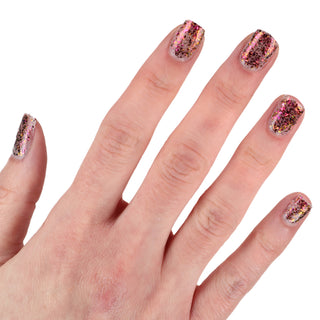 • Star Fire Nail Lacquer is a multi-chrome extravaganza with mesmerizing green and purple tones, delivering an out-of-this-world shimmer and captivating glow.